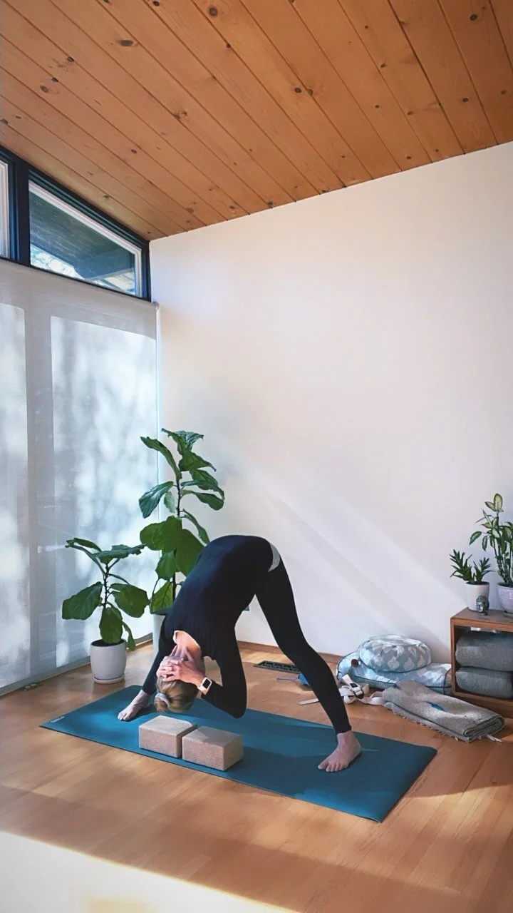 These poses stretch the back of the body and are also incredibly calming for the nervous system. To do: choose the shape you like most today. Use the wall, blankets, bolsters, pillows, etc. to support your body. Stay 5-20 minutes depending on the shape you chose and your level of support.